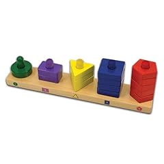 Another great product from Melissa and Doug. As with all their wooden toys this is extremely well made. It is bright and colourful, and has a number of different educational aspects; Colours, shapes, numbers and also learning to put small objects on a thin shape. I am very impressed with this and although at this age (14 months) my little guy is only really putting the things on randomly I am sure that this will last for quite some time before it loses its appeal for both fun and education. Highly recommended.