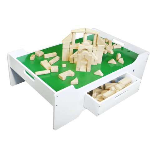 - Large, sturdy, wooden play table is ideal for trains, dollhouses, arts and crafts projects, blocks, puzzles and more