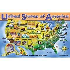 Explore the United States with this 45-piece geography puzzle from Lights, Camera, Interaction. Learning the basics is more fun than ever as you travel the country and discover interesting facts about each state as you put the map together. Measures 15.7" x 11.7".I've always enjoyed M&D toys, and this puzzle is one of our best purchases. It is high quality and very durable. My 4-yr-old begs to play this puzzle every day, and she is learning states, capitals, history, and geography while having fun! I highly recommend this puzzle!