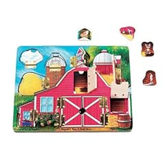It's a barnyard full of wooden toy surprises with melissa and Doug! Behind each brass-hinged door is a playful magnetic wooden toy pieces to remove and rotate from place to place. The 9 piece Magnetic Farm Hide and Seek by melissa and Doug keeps kids guessing what's hiding for hours! Ages 3+. 9 x 12 x .5 (inches)Great puzzle for the little ones in your life. Open the doors and they make a sound. Very durable!!