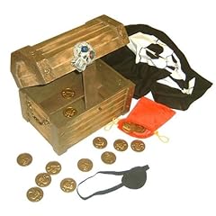 Ahoy, Matey, store all kinds of treasures in this sturdy wooden Pirate Chest. Features ornate brass handles, a locking skull latch, pirate bandana, eye patch, loot bag, gold doubloon coins and a special, secret compartment to stash your most valuable loot away. Measures 6.5" x 9.5" x 7.5".My very adult brother is very much into pirates, and he loved this gift. It is very durable. And- yes the 'hidden' area of the chest is easy to find, but this is intended for children, not as a safe for your retirement nest egg!