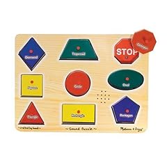 This Shapes and Sounds Peg Puzzle is a twist on the classic peg puzzle. Sounds are played when the puzzle pieces are properly placed on the board. It's a fun and unique way to reinforce cause-and-effect, early vocabulary and matching skills. Measures 9" x 12". Requires 2 "AAA" batteries (not included).I was so excited when I saw this puzzle online and didn't even realize it was a sound puzzle until I got it in the mail. Quick Shopping :) Anyway so I was very excited and put in a battery. The puzzle has sturdy pieces but the board is okay looks pretty cheap. The other thing I am not to crazy about is the puzzle will say incorrect shapes and will talk when no one is around which is pretty scarey if you are alone and you hear "square".