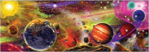 Whether the universe is expanding or contracting, it is certainly full of excitement and discovery! This 100-piece cardboard floor puzzle features dramatic images of our solar system. Over?4'?long when assembled.?Its easy-clean surface keeps puzzle looking new. Puzzle measures 12"L?x 9.5"W?x 3"H.The puzzle should have the planets' names indicated and placed in proper relationship to each other
