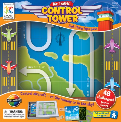 Can you navigate the planes safely to their destinations? As an air traffic controller, you're in control of each plane's position - both on the runway and in the air! Guide each plane along a safe route by arranging the six transparent puzzle pieces on the challenge cards. Pilots are depending on you - are you up to the task? Higher thinking skills soar as you solve 48 challenging puzzles across 4 exciting game scenarios. Puzzle pieces and cards store in the game board's pull-out drawer. Includes game board with built-in card storage, 48 puzzles (with 4 difficulty levels), 6 transparent puzzle pieces, and solutions booklet.For 1 player.