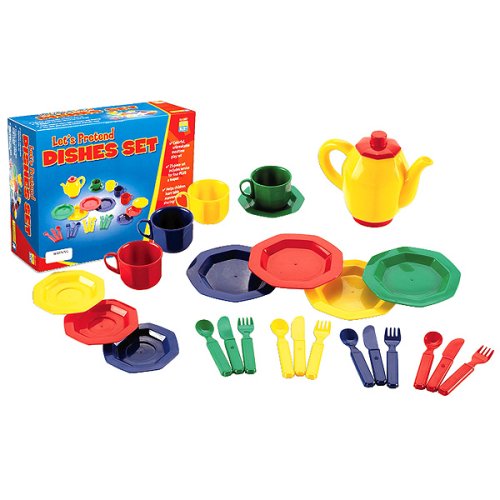 Set the table for creative play! As children enjoy pretend meals, they " feed" their imagination and develop a variety of early learning skills in math and language.Brightly colored play dishes are very durable and make a wonderful addition to a play kitchen.