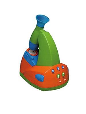 Kids can examine all sorts of critters on 12 prepared interactive slides while details are spoken in fact mode or as a fun quiz game. Features 5X focusing magnifier and a light for easy viewing. Comes with Talking Microscope unit, 12 prepared interactive slides, and slide storage box. Requires three C batteries (not included)."