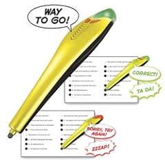 This amazing new hot Dots Pen TALKS, GLOWS bigger and brighter, and makes more of the FUN SOUNDS kids love! You select what you want to hear: cool phrases, wild SFX, or both! Plus, the new SLIMLINE design makes it easy to use! Works with ALL hot Dots products! Uses 2 AAA batteries (not included).I ordered this pen for my son to go with his hot dots flash cards. It is a great way for him to practice his computation skills and offers opportunity to self correct instead of looking at the correct answer. He enjoys the fun noises and it is quiet enough so it doesn't disturb others in the room.