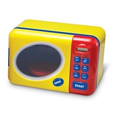 Kids can cook up hours of pretend play with plenty of tasty features, including six timed food settings with sound effects and a count-down digital clock. Pretend Play microwave Oven also has a clear door panel and inside light so kids can see the rotating food carousel inside. Requires three "AA" batteries (not included). Measures 10.9" x 8.3" x 6.6".I recently purchased this microwave for my son and he is OBSESSED with it. Wants to "warm up" food for us all the time. It has been dropped three or four times - dropped pretty hard on brick floor - and still keeps on beeping with no issues. Two small things - the door is a bit tricky to close. Not a big thing but something that is noticeable. Also the battery life is not so hot. We have changed the batteries several times - but he uses it ALL THE TIME so that's probably part of the battery issue. High on the fun scale. Amazing that it provides actual hours of entertainment...