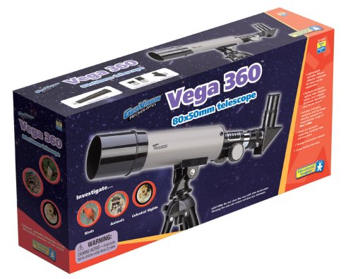 20x, 40x and 80x magnifications! With this lightweight and durable telescope, young scientists can explore the natural wonders of the earth or the craters of the moon and beyond. The all-glass optics and magnification from 20x to 80x provide clear, up-close images of birds, animals, distant exotic plants, as well as celestial objects. Plus, it's easy to use and perfect for backyard exploring, camping trips, and vacations. Both children and adults will enjoy hours of discovery and observation fun. Measures 29.3" x 7" x 9.8".For the price, you can't beat this "spotting" scope as my 4.5 year old calls it. It is lightweight and easy for your young astronomer to move around on their own in exploring outer space. We have shared many nights on our deck looking at the stars and moon and I'm sure we'll enjoy many more with this telescope. Enjoy!