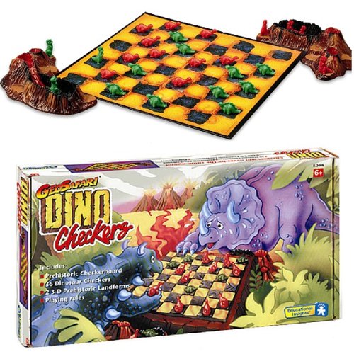 Battling dinos turn traditional checkers into a time-warped tussle! Teaches logical thinking skills, strategy, and more! Stegosaurus and Brontosaurus playing pieces battle for squares of lava, then become Tyrannosaurus Rexes when kinged. Captured dinos goI was really looking forward to this board, and I was slightly disappointed with the quality. It's still fun, but the cheap, "dollar store" feel of the pieces takes away some of it. It wasn't expensive, and I'm glad I got it, I just would not buy it as a gift, because of the above. I wish they made it little better and even charged slightly more for it.