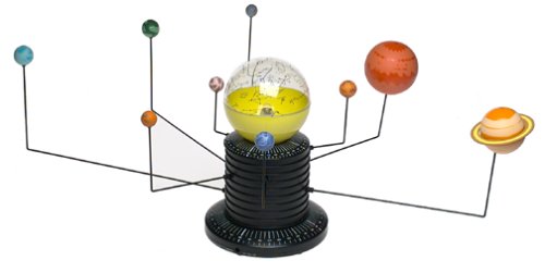 The “sun” shines onto the nine planets as they orbit around it. The central tower and planetary support rods are black so that they “disappear” in a darkened room for a spectacular effect! Replace the solar dome with the star dome included to create a spectacular planetarium sky complete with major constellation names. In addition the base features a special 1000-hour light bulb and planetary longitude marks so the planets can be set up to their correct positions. The Solar System model can also be powered by four C batteries (not included).This "model" violates virtually every rule of modeling. The planets are equi-distant, painted the wrong color (I thought Neptune was Earth), and out of scale with each other and the sun. More appalling is that they all rotate at the same speed. A complete waste of money.