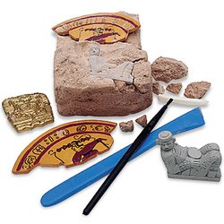 Ages 7 and up. Children discover the amazing science of archaeology as they uncover 'ancient' artifacts! After carefully excavating with tools like real archaeologists use, kids can wet the Mystery Matrix Sand to create one of two sand sculptures for display (molding tray provided in each kit). Clay can be recast again and again with the same artifacts or any other items for hours of archaeological adventures! Each kit comes with easy-to follow instructions and facts in the Archaeologist's Guide Book. Artifacts include a scarab, hieroglyphic tablet, ankh symbol, and jackal. Sand sculpture molds create a pyramid or sphinx.