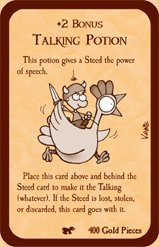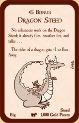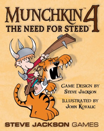 Munchkin 4: The Need for Steed is an expansion for the original Munchkin. Get ready for 112 more John Kovalic-illustrated cards for killing monsters, stealing treasure, and backstabbing your fellow players. This set introduces Steeds, the trusty mounts of legend. These Steeds include not just the Dragon and the Tiger, but the Giant Mutant Gerbil (drawn by guest artist Shaenon K. Garrity of Narbonic), the Chicken, and Big Joe, who might be a Steed or might be a Hireling. It's hard to tell. Add these valuable characters to your team, use their special abilities, and sacrifice them without a thought to save your own skin. This is an expansion to Munchkin, and you'll need to own that game in order to play this expansion.